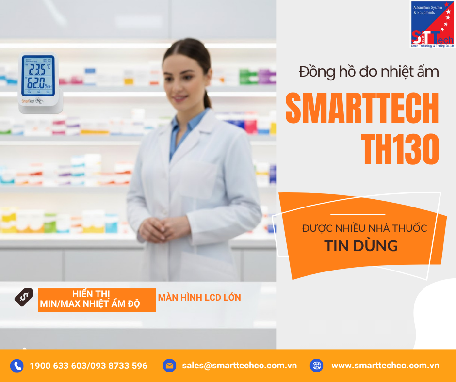 TH130 là thiết bị đo nhiệt độ và độ ẩm được thiết kế dành riêng cho nhà thuốc, phòng khám và các không gian bảo quản sản phẩm y tế. Thiết bị giúp theo dõi điều kiện môi trường chính xác, liên tục, đáp ứng yêu cầu GPP/GSP.